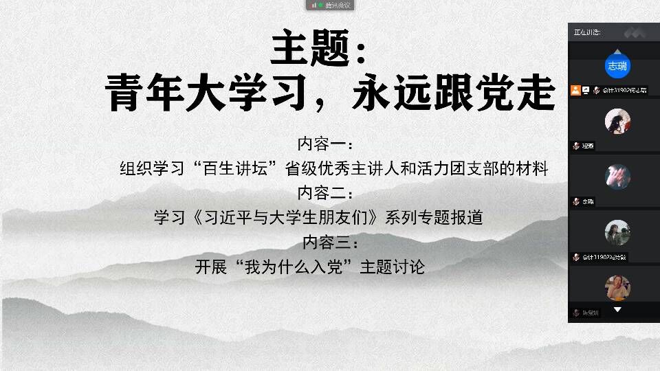 为引领带动广大团员青年认真学习习近平新时代中国特色社会主义思想,贯彻落实团中央深入推进“青年大学习”行动工作部署,太阳成集团tyc151组织各班团支部开展“青年大学习,永远跟党走”主题团日活动。