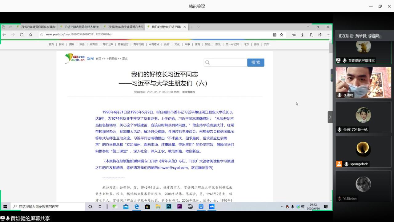 团支部组织青年团员逐篇研读《习近平与老员工朋友们》系列专题报道,交流感想。这组报道是青年员工学习领会和贯彻落实习近平新时代中国特色社会主义思想的生动教材,引领青年员工不辜负总书记期望,沿着党指引的方向健康成长。通过学习,团员青年们收获颇丰。金融11703班李猛同学说:“一直以来,在深入学习贯彻习近平总书记的青年观、成才观中,深深地领会到他对青年成长成才的殷切期望,而在物质文化高度发达的今天,也不能忘记我们中华民族勤劳刻苦的传统美德。刻苦学习和艰苦奋斗都是我们青年员工最容易找到和掌握的‘苦’,并且只有在这份‘苦’中,才有办法提升自己各方面的知识技能水平。”农经11702班彭书范同学说:“在一系列的报道里,习近平总书记鼓励青年人回到家乡去发展,指导青年人扎根基层、投身到基层建设中去,他总是关怀着青年的生活志趣,与老员工交往、交流与交心,通过启发式的教育引导,真正成为了我们青年学习的榜样和人生的导师。”
