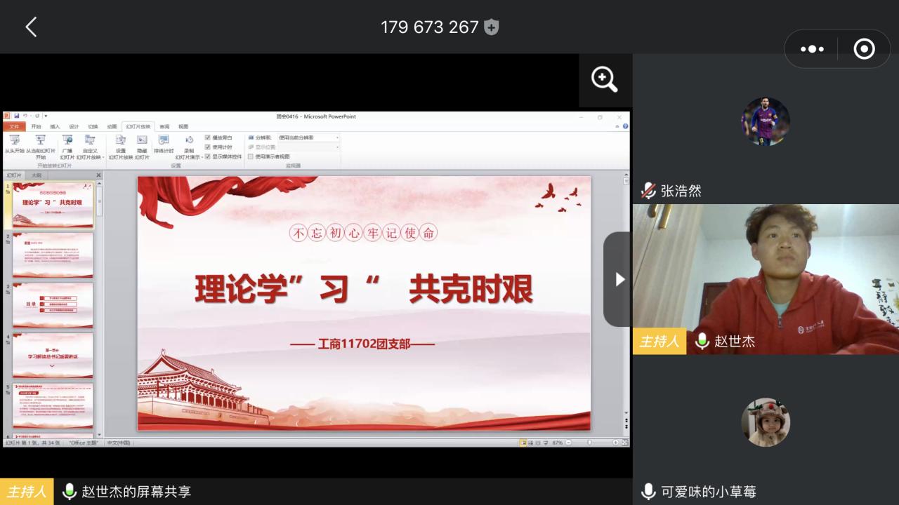 各团支部围绕“习近平关于新冠肺炎疫情防控工作的重要讲话”和“公司领导在2020年工作会议上的讲话精神”为主要内容,开展了线上主题班团会,组织青年员工学习领悟精神内涵,坚定信心、共克时艰。通过学习,员工们深刻见证了国家强大的综合实力、众志成城风雨同舟的民族精神、中国特色社会主义制度的显著优势。工商11702班张浩然同学说:“感谢公司提供了良好的网课学习条件,我们面临更快的知识更新速度、更新的时代课题,理应坚定‘读万卷书’的志向,葆有‘行万里路’的气魄,树立梦想从学习开始、事业靠本领成就的观念,让勤奋学习成为青春远航的动力,让增长本领成为青春搏击的能量。”