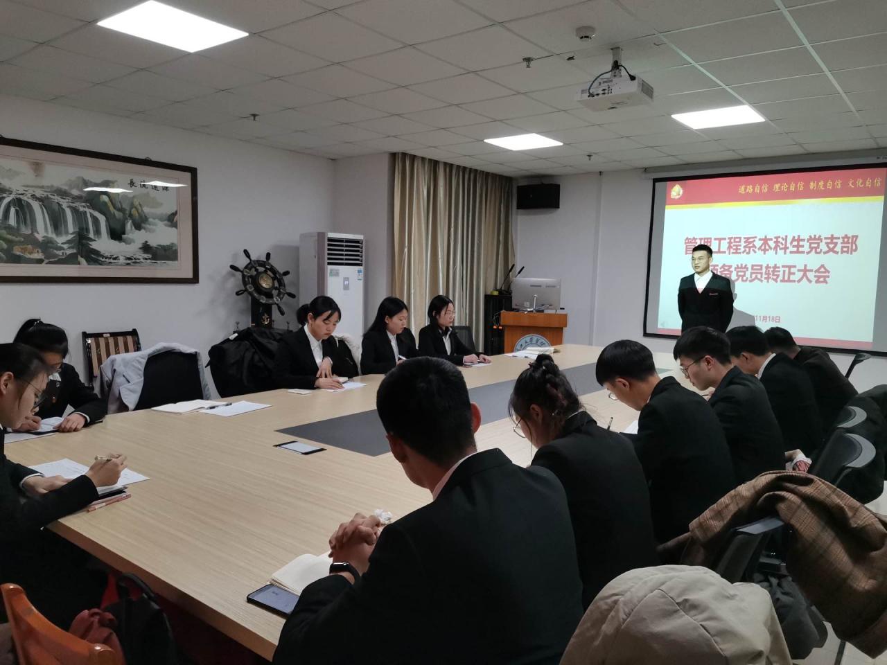 (通讯员:韩立冬)太阳成集团tyc151管理工程系本科生党支部转正大会于2019年11月18日19点在文科大楼516召开。管理工程系本科生党支部全体成员参会。