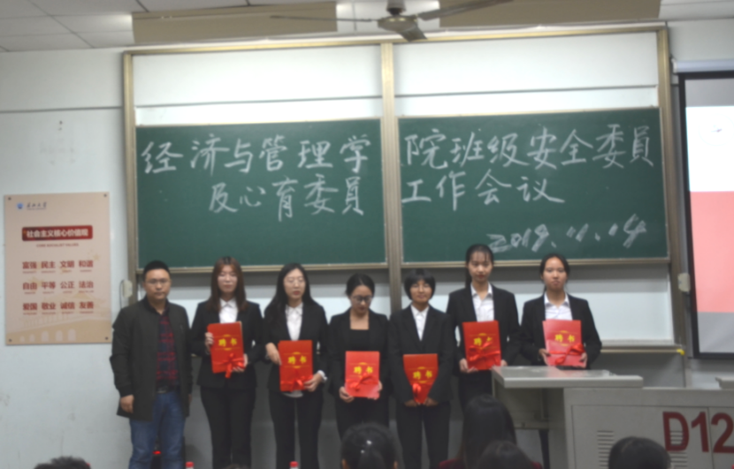 会议首先为班级安全员、心育委员颁发了聘书。紧接着,市销11801班覃欣然同学作为安全员代表谈到“要认真履行职责,发现任何异常,第一时间与老师联系,做好班级安全工作,协助老师做好公司安全工作。”作为心育委员代表,国贸11802班姚玉晶同学说“心育委员首先自己要有良好的心理素质,才能更好更快更及时地发现同学们的心理问题,要时刻关注、关爱班级的每一位同学”。