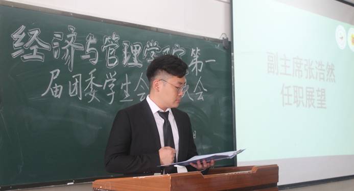 大会伊始,团委员工会代表张文龙同学的发言为本次大会拉开了序幕。他讲到员工干部的初衷是为老师同学服务,应当从“坚守职责,无私奉献”、“高度自我控制”、“卓越的业务能力”、“坚定党的信仰,弘扬社会主义精神”四个方面严格要求自己。