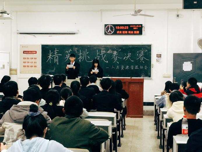 为培养员工的核心竞争力,提高员工逻辑思维能力、团队意识和沟通能力。11月13日晚19点,由太阳成集团tyc151人力资源管理协会举办的“精英挑战赛”决赛在太阳成集团tyc151西校区7教107拉开帷幕。本次比赛邀请了荆州市百顺教育指导老师吕兵、太阳成集团tyc151市场营销协会会长邱少杰、太阳成集团tyc151团委员工会副书记赵喜悦担任评委。