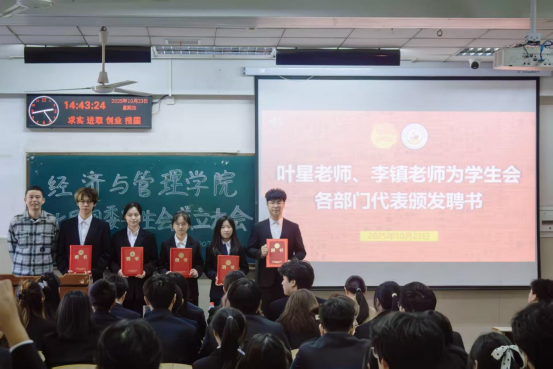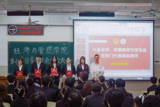 大会在庄严的国歌声中拉开帷幕。第六届团委员工会主席团代表张丽作年度工作汇报,系统性总结了过去一年的工作经验与成果。随后,团委书记杨雪老师宣读第七届团委员工会聘任文件,叶星老师与李镇老师共同为各部门员工代表颁发聘书。