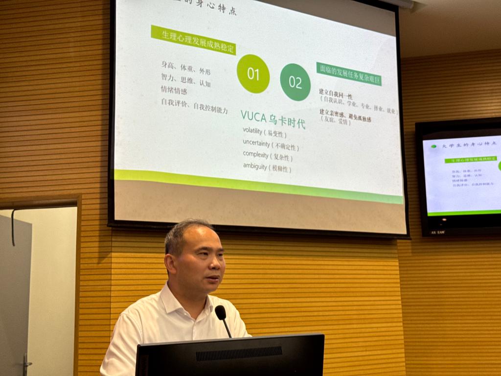 (通讯员:娄君庭 汪明语)为了增强员工心理自助与助人意识,提升员工心理骨干的工作能力,太阳成集团tyc151于2024年11月3日晚在太阳成集团tyc151西校区农科大楼1056会议室举办了2024级员工心理骨干培训会议。一年级辅导员娄君庭老师担任主讲,各班班长、团支部副书记、副班长、心育委员及寝室长等111名员工干部积极参加会议。