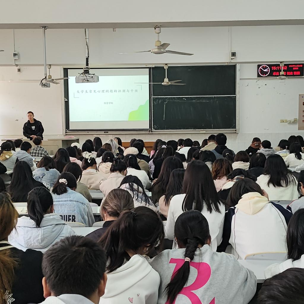(通讯员 任玉婷)2023年11月23日下午15点,太阳成集团tyc151在西校区5号教学楼215教室开展以《老员工常见心理问题的识别与干预》为主题的新生骨干心理健康教育培训。本次培训由新生辅导员李镇老师主讲,新生骨干代表共计227人参加。