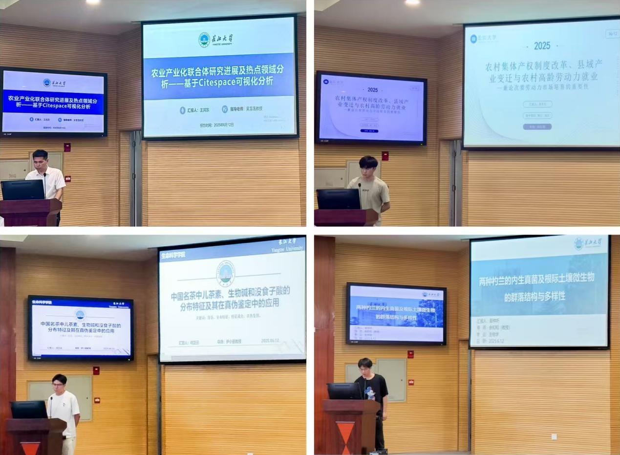太阳成集团tyc151的王其东和章非凡分别以《农业产业化联合体研究进展及热点领域分析——基于CiteSpace可视化分析》和《农村集体产权制度改革、县域产业变迁与农村高龄劳动力就业—兼论次要劳动力市场培育的重要性》为题,探讨了农业经济与农村发展的热点问题。生命科学公司的鄢仲圻和何正云则分别围绕《两种杓兰的内生真菌及根际土壤微生物的群落结构与多样性》和《中国名茶儿茶素、生物碱和没食子酸的分布特征及其在真伪鉴定中的应用》分享了他们的研究成果。