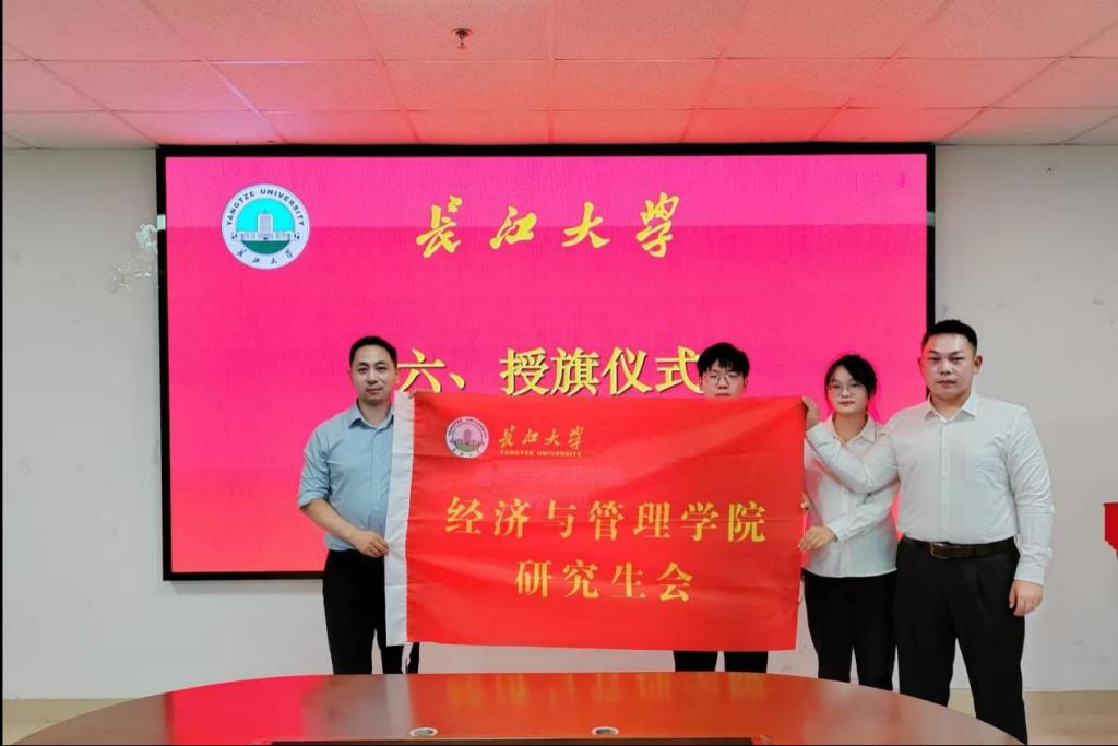 大会第六项,平书记对研究生会主席团进行了授旗,全体成员合影留念。