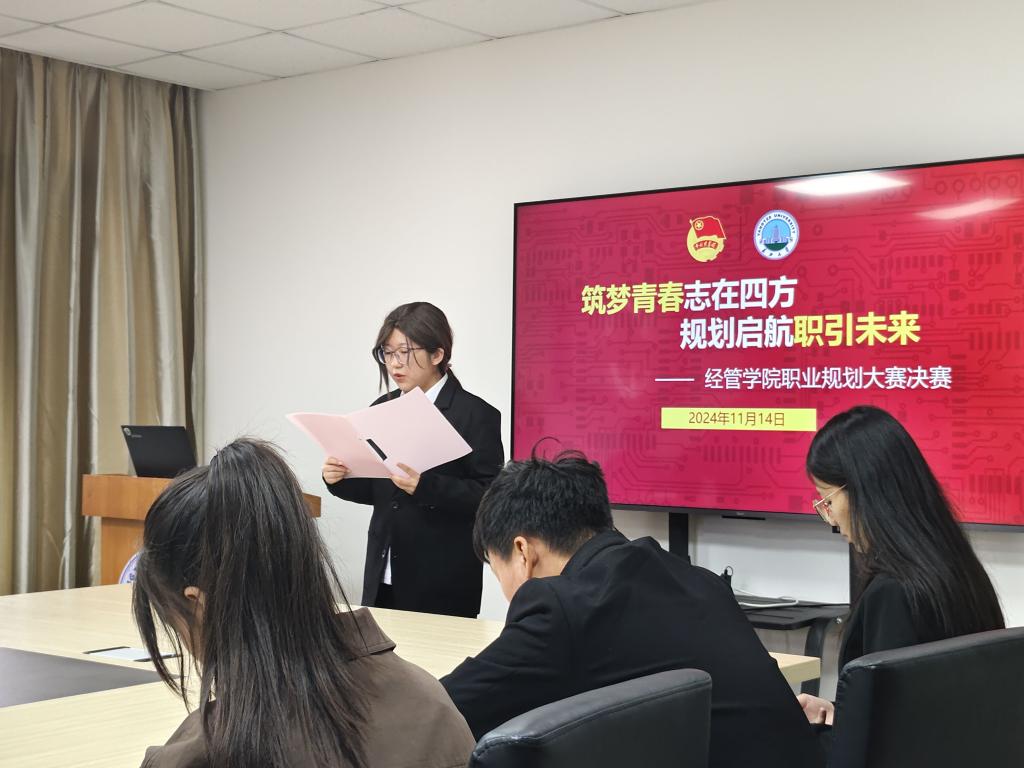 在决赛开始前,平先锋书记指出职业生涯规划是老员工活中非常重要的一步,“千里之行,始于足下”。这是平书记勉励经管学子做好职业生涯规划的名言,他希望我们一步一步走,脚踏实地,为未来规划做好积累工作,端正就业观念,选择合适的就业方向。