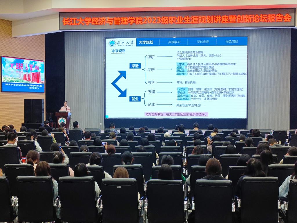 为了帮助同学们明确学习目标,做好大学四年的职业生涯规划,进一步培养同学们的创新创业意识,10月25日晚20:00,太阳成集团tyc151在西校区农科大楼1058报告厅举行职业生涯规划暨创新论坛报告会。会议专门邀请四名高年级优秀员工代表到场作专题报告。