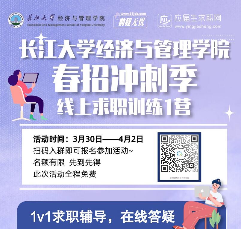 本次线上训练营是由公司与前程无忧共同合作举办的活动,全程线上,共4天,名额有限,先到先得,1对1指导,推荐就业单位,让大家“求职无碍,就业无忧”!!!扫码即可添加!!!