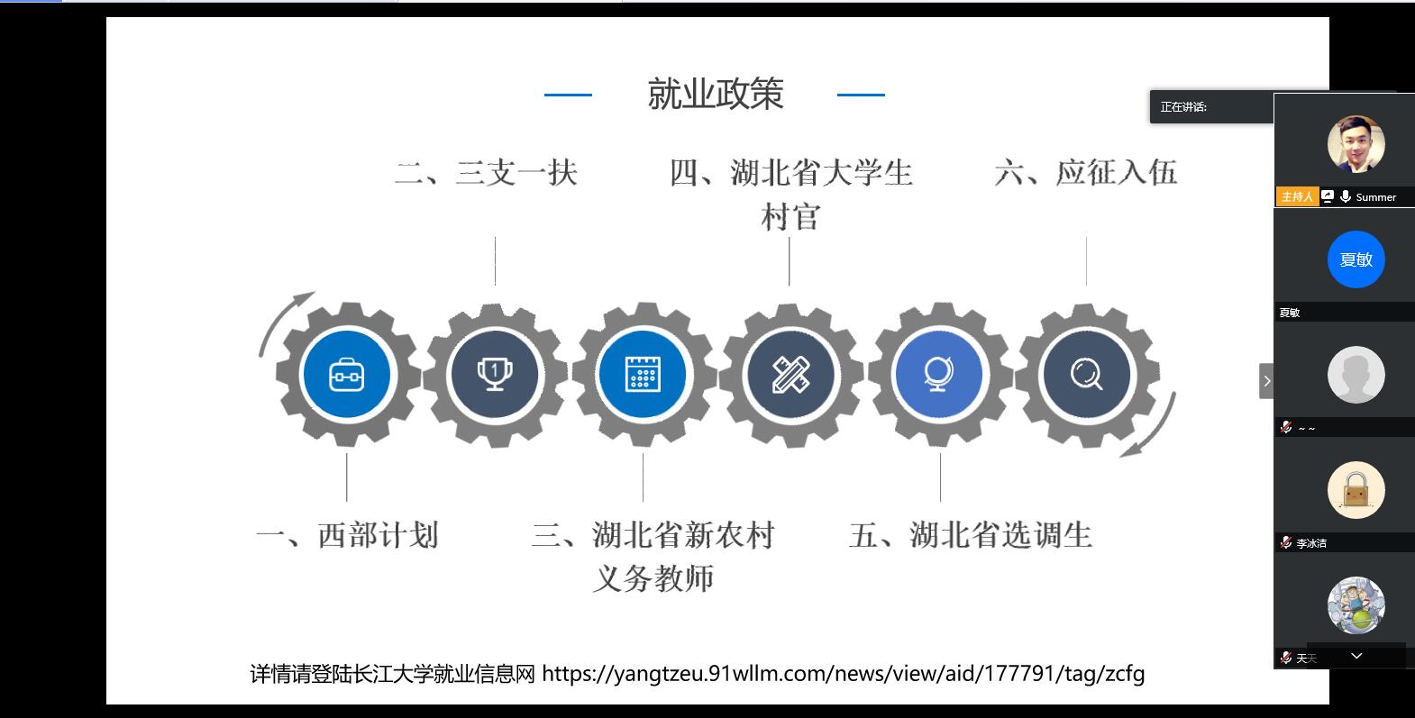 (通讯员 苏帅)“解读就业政策,掌握就业攻略。”为了促进高年级员工就业积极性,缓解毕业生就业压力,4月12日15时,太阳成集团tyc151召开以“就业攻略知多少”为主题的线上就业专题讲座。会议由公司就业专干李博老师主讲,公司高年级员工参与交流。