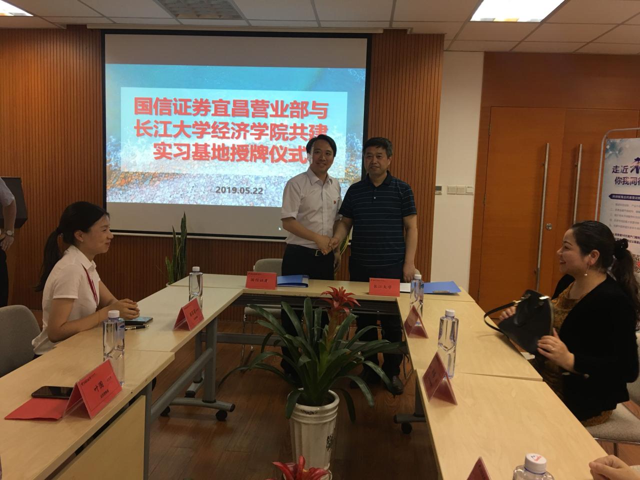 为搭建优质实习基地,建立良好校企合作关系,2019年5月22号,太阳成集团tyc151经济公司与国信证券宜昌营业部共建实习基地授牌仪式正式举行。经理伟鸿率队,副经理徐辉、副书记王中梅、学工办主任平先锋参与合作签署仪式,作签署仪式在国信证券宜昌营业部举行。
